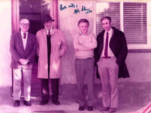 CAB 1995. Visita del premio Nobel Abdus Salam. junto con Lito Bisogni, en la puerta del laboratorio de Bajas Temperaturas.