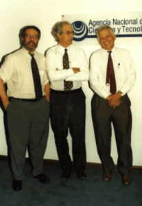 En 1996 ocurrió otro hecho por el cual guardo un profundo agradecimiento a Paco. El nuevo secretario de CyT, el Lic. Juan Carlos Del Bello le pidió ayuda. Significó un sacrificio para los De La Cruz que Paco viajara todas las semanas desde Bariloche, pero Paco aceptó. Primero fue para colaborar en la reorganización del CONICET, luego sobrevino la discusión sobre la conveniencia de crear una Agencia exclusivamente dedicada a financiar       proyectos mediante concursos competitivos. Allí comenzó nuestra tarea de organizarla y la contribución de Paco, junto con Alfredo Caro, en el diseño de un robusto sistema de evaluación de proyectos y un sistema informático de adjudicación, fue esencial. Fue un trabajo intenso que hicimos con el entusiasmo de quien se enrola en una misión que cree valiosa. En esa época buena parte de los miembros de la carrera del investigador se sintieron amenazados y fueron duros con nosotros temiendo que la intención inconfesable de esta Agencia era suplantar al CONICET. El hecho que Del Bello consiguiera fondos para reforzar el presupuesto del CONICET y por separado financiar a la Agencia sin quitar nada a ese organismo no fue reconocido. El prestigio de Paco fue, en esas circunstancias, un soporte fenomenal.