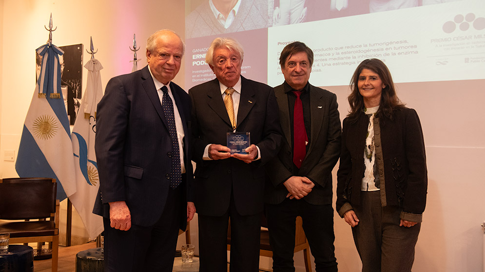La AAPC felicita calurosamente al Dr. Ernesto Jorge Podestá, Miembro Titular e integrante del Colegiado Directivo de la Asociación, por haber sido distinguido con el Premio César Milstein 2025. Este premio , otorgado por el CONICET, la Fundación Cassará y el Instituto Milstein, reconoce el liderazgo del Dr. Podestá en desarrollos en biotecnología con impacto en la salud humana. El alcance de este premio y los hallazgos del Dr. Podestá se pueden leer haciendo clic aquí
